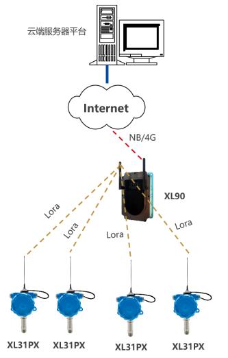 (1)XL31PX智能壓力傳感器與XL90物聯網關之間采用LoRa無線通信技術進行數據傳輸,在罐區環境傳輸半徑大約500米(理想傳輸距離10公里),能夠滿足現場的通信需求。